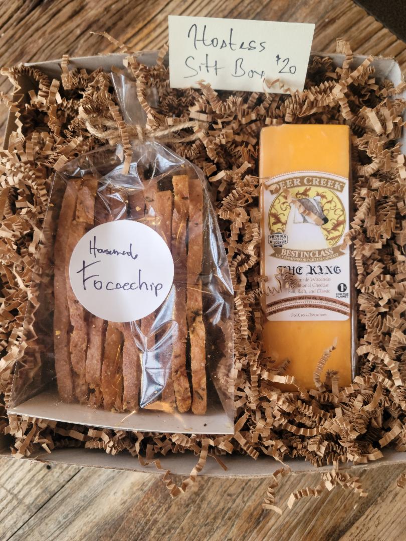 Makes a considerate gift: one cheese and one bag of crackers. $20